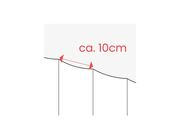 Die Wave-Konfektion bietet einen gleichmäßigen, sanft geschwungenen Faltenverlauf – ganz ohne sichtbare Faltenbänder oder Zugfalten. Der Stoff wird so verarbeitet, dass sich eine gleichmäßige Wellenform ergibt, die über die gesamte Breite hinweg verläuft. Das sorgt für ein besonders ruhiges, modernes Erscheinungsbild mit fließender Wirkung.